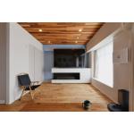 奥様の求める「ホテルライク」と、ご主人の求める「家族でくつろげるリビング」の二つを軸にプランニング。 腰壁やアクセントクロスでメリハリをつけることで、西海岸風ホテルのような様子に。居室だった場所との壁を取り払うことで、リビングを広げ、開放的な空間となりました。 エタノール暖炉の上に大きなテレビを置けるようにすることで、豪華なシアタールームの完成です。