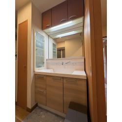 既存の棚をそのまま使い、洗面台は使いやすい形に交換しました
