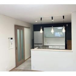 閉鎖的な空間から開放的で使いやすいキッチンにしたいとリフォームのご依頼をいただきました。 片付けがしやすいようにしたいとのことだったので、ニッチや収納棚を造作し、キッチン周りの小物をすっきりと収納できるようにしました。 また、ダクトレール・ペンダントライトを新設し、カフェのようなお洒落なキッチンを演出。 白っぽい電球色にしたい!という施主様のご希望に添って、電気メーカーのカタログを取り寄せ、動画や写真を見て確認していき、厳選しました。 イメージ通りで大満足です!と大変お喜びいただきました。