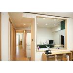 広さを確保するため、玄関横の洋室の壁と扉を取り壊し、シューズボックスを洋室側へ移動。 以前洋室だったスペースはフリースペースとして活用できるほか、玄関収納としても便利に使えるようになりました。 明るさを取り込むための窓には内窓を設置し、遮熱・防音対策も行っています。 上がり框を曲線にしたことで、玄関に入った時に柔らかな印象を感じる玄関ホールになりました。