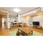 パソコン作業スペースの使い勝手にも配慮し、リビング中央部分に畳を設置するプランをご提案しました。 畳には汚れても掃除がしやすい「セキスイ畳 MIGUSA 樹脂畳」を採用。 フローリング部分には、滑りにくく歩きやすい「イクタ プリオス 介護とペット」をご提案し、安全性と快適性を両立させています。