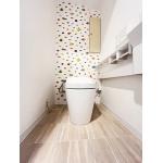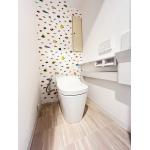 - 遊び心あるお魚クロスのトイレ空間