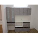 冷蔵庫スペースを確保し、残りのスペースに納まるカップボードのプランをご提案させていただきました。