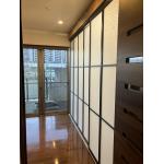 折戸を上吊りにすることで軽やかに開け閉めでき、麻の葉パネルが空間にやさしい抜け感をプラス。格納時は開口が広く、生活動線を邪魔しない省スペース設計です。