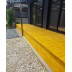 石をどけて駐車場として利用。 ウッドデッキを造作して、お庭へのアクセスもしやすくなりました。