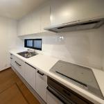 ご要望にお応えし、キッチンは配置を大きく変えず、壁の一部を取り外してリビングとのつながりを感じられるプランをご提案しました。これにより視線が抜け、開放感のある明るいキッチン空間へと生まれ変わりました。設備には白を基調としたクリナップのシステムキッチン「ラクエラ」を採用。シンプルで上質なデザインが空間に調和し、清潔感のあるすっきりとした印象に仕上がりました。 キッチンはI型・間口2860mmのゆとりあるサイズで、扉はやさしい色合いのコンフォートトッコモカクリーム、キャビネットはホワイトを選定。ワークトップには耐久性と美しさを兼ね備えたアクリストン(クレマホワイト)を採用しました。さらに、食器洗い乾燥機や3口IHヒーター(水無両面焼きグリル付)、お手入れしやすい「とってもクリーンフード」を備え、デザイン性と使いやすさを両立した快適なキッチンとなっています。