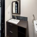 黒を基調としたシックな洗面所