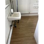 床に長尺シートを採用し、水を流して掃除ができる仕様をご提案。あわせて、和便器を撤去した際に残る穴は下地から丁寧に補修し、フラットな状態に整えました。