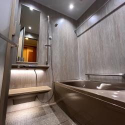 | その他採用機器・設備 | ファーストクラス浴槽、楽湯(肩楽湯・腰楽湯)、床ワイパー洗浄(きれい除菌水)、2WAYタッチ水栓、お掃除ラクラク人大浴槽(ストレート/ステップ無)、魔法びん浴槽、ラクかるふろふた2枚割ふた(断熱仕様)3点留めタイプ(メタル調)、お掃除ラクラクカウンター人工大理石、調光調色システム(DL4灯)カウンター下照明付き 肩楽湯照明付き、平天井(抗菌・防カビ仕様)、スライドハンガー付インテリアバー、タオル掛け(角型)メタル調、お掃除ラクラク鏡アルミフレーム付縦長ミラー(W340×H1150)、スッキリドア開き戸(W800・H2000・プラチナステン)、ランドリーパイプ1本、ドア外タオル掛け(プラチナステン) |