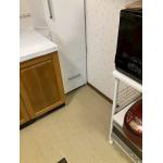 既存のフロアタイルをはがし、キッチンの端まで一体の床に仕上げました。