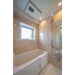 浴室に大きな窓を設置。自然光を取り入れ、開放感を生み出すことで、空間を広く感じられるようにしました。また、上質な木目調パネルを採用することで、くつろぎの空間を演出しました。
