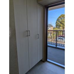 タイルを貼り替えることで、玄関全体の明るさが一段とアップしました。 収納と床の色調を統一したことで、限られたスペースも奥行きを感じる開放的な空間に生まれ変わりました。