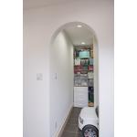 アーチ状の下がり壁で広々とした空間を機能別にゾーニング