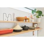 天然木の風合いが美しいカウンターを備えたクリナップのキッチン『ステディア』を採用。家具のような佇まいで空間に溶け込みます。キッチンの背面に設えたオリジナルの棚は、大工さんの造作。金物の支えを一切使わず、オールウッド仕様に。