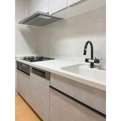 ・海外製の大型食洗機が搭載可能なメーカーのキッチンをご案内しました ・キッチンのみの入れ替えとなりますので、他の内装部分等を傷つけないよう、配慮しました
