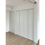 既存フローリングと違和感がないフロア材をご提案。 上吊り戸をご希望されましたが、安定した使い勝手を考慮し、レールの敷居を採用しました。