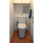・シンプルな機能と、お手入れのしやすさを重視ししてご提案しました。 ・壁と天井のクロスは、奥様のお好みで猫の足跡の柄が付いたかわいらしいクロスをご選択。壁から天井へ足跡が続くようにクロスを貼るというこだわりで、とてもかわいらしく思わず目で追いたくなります。 ・床のクッションフロアは、テラコッタ。壁の白いクロスとの相性が抜群で、素敵なトイレ空間となりました。
