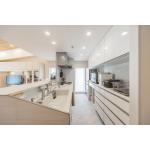 ・ホワイトで統一して清潔感のあふれる広々としたキッチンが完成しました。・背面のキャビネットは収納もたっぷり。・対面キッチンから見えるリビングは解放感のある空間となりお客様にも大変満足いただきました。