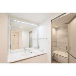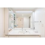 ・洗面化粧台は、上品で高級感のあるLIXILの『ルミシス』をご選択。幅は1350mmあり、広々とお使いいただけます。 ・カウンターは「ボウル一体タイプ」。繋ぎ目のない人造大理石のカウンターで、美しいだけでなく、清掃性にも優れています。 ・鏡も大きく、収納もたっぷり。お客様にご満足いただきました。