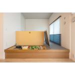 ・もともとフローリングだったリビング横のお部屋を小上がりの和室へ変更。Panasonicの『畳が丘』を設置することで、畳の下にたっぷりと収納ができるようになりました。