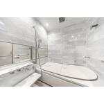 ・浴槽は、1418mmから1616mmへサイズアップに成功。お客様も浴槽が広くなり、喜んでいただきました。 ・壁柄は4面同色プランでプレミアムグレードの『パティオホワイト』。清潔感がありながら、高級感のある空間が完成しました。