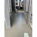 オシャレな模様のスタンプコンクリートによる舗装を行い、サイクルポートを設置し、すっきりとした空間になりました。自転車の出し入れもスムーズになり、もう雑草取りの手間や土ぼこりの心配もいりません。