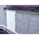 雨漏りはビス穴からの浸水やコーキングの剥離、雪解け時の吸水などが重なり、結果として雨漏りと凍害を併発していたと考えられます。塗装できない状態だったので補修をします。 軒樋はジョイント部分から雨水が漏れている可能性が高いことが分かりました。通常であれば部材ごと交換する方法が確実ですが、交換となると専用部材の取り寄せや大規模な工事が必要になり、非常に高コストになってしまいます。 そのため今回は、現状の樋をできる限り活かしながら補修を行う方針を選択しました。 工事中でも窓を開けて換気したいとのご要望があり、夕方以降は窓を開けられるように養生をしました。