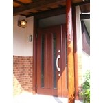 色あせた玄関ドアを明かり取りも出来るアルミ製ドアに変更