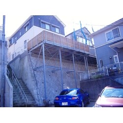 - 傾斜地を利用したデッキ(鉄骨・イぺ材)