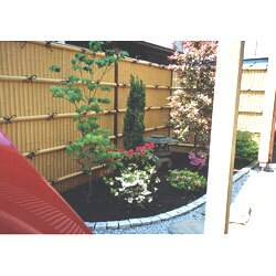 お施主様がご高齢ということで、手入れのなるべくかからない樹脂製竹垣と、四季を色どる植栽を選定いたしました。