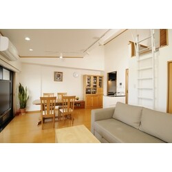中古マンションを購入し全体的なリフォームにより、バリアフリー設計で安心に暮らせ、また、子供のセカンドハウス的な役割を果たせるような住まいへと変わりました。 更に最上階という事で、天井高がありましたので改築することでロフトを造作しました。 バリアフリーについてはケアマネージャーである娘様のアドバイスを基に、的確かつ柔軟な提案で将来を見据えた快適なリフォームを実現しました。 もともとあった段差を解消することはもちろん、将来のために壁に手摺用の木下地をいれたり、玄関には「靴を履くのがラクになるように」と壁付のたためるベンチを採用しました。 マンション最上階という条件を活用し、屋根の形状に沿って天井を出来る限り高くする事と、2部屋を1部屋にすることで開放的な空間になり、またその懐にはロフト収納を設置しました。 その他、出し入れがしやすい昇降式収納を採用したキッチンや、フローリングは車椅子でも傷の付きにくいものを等、設備や建材に至るまで、極め細やかに将来設計が行き届いています。