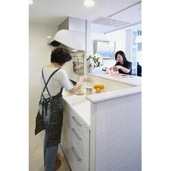 キッチンに立つととても幸せな気分になります。リビングを見通せる明るいキッチンになりました。 調理中も家族と会話をできるので大変満足しています。
