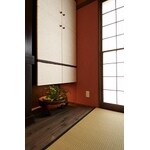 (旧東京ガスリモデリング株式会社での事例です。)中古物件の購入を機会にリフォームを依頼されました。アンティーク家具に調和するような和室空間をご提案しました。自然素材にこだわり、収納部分の壁には手漉き紙(こげ茶)を貼り、天井は敷目天井に塗装(こげ茶)、障子は猫間障子にしました。