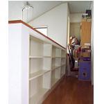 壁を書棚にしてしまうリフォーム ご予算 約20万円 壁の中に書棚を組み込みました。壁の中にはこうして書棚を組み込める位のスペースがあります。 この書棚は長さ約250cm 高さ85cm 奥行き 140cmあり、VHSのビデオなら250本、200頁の文庫本600冊、CD1000本収納出来ます。