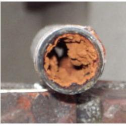 水の出が悪くなったとのことで古い給水を輪切りしてみますと錆でほとんど詰まっていました。 水圧もかなり低下しており、ウォシュレットも動かない状態でした。
