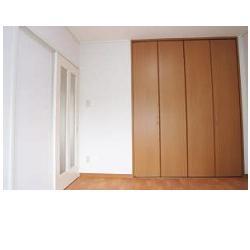 押入れをクローゼットに、入口の襖を引き戸に取替えました。 天井、壁クロス仕上げ、床はクッションフロアーです。 白を基調にスッキリまとめてました。