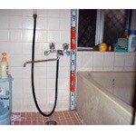 洗面室側の壁内に浴槽が入り込んでいるタイプなので、増築をしなくても広目の浴槽になりました。(千葉市高齢者住宅改修利用)