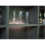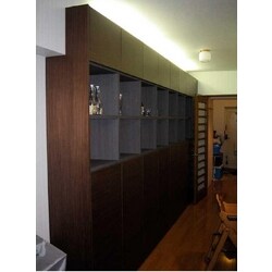 収納が少なかったので、引越しをしたばかりということもあって、リビングに物があふれかえっておりました。そこで、収納が何か出来ないかと相談したところ、キュビオスというものを紹介されました。実際にショウルームにいき、物を確認しましたが、高級感のある面材にほれ込んでしまいました。もともと大きな壁になっていたので、そこに高級感ある造り付け家具となりました。趣味のミニカーも飾れて非常に満足です。あと、ちょっと工夫をして上部に照明器具をつけてもらい間接照明にもなりました。結構素敵です。