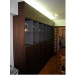 収納で御相談を受けたのですが、リビングを味気ないものにしてはよくないと思い、キュビオスを御提案差し上げたのですが、ショウルームでご覧になって、プレミアクラスとなりました。非常に高級感のある仕上がりとなったと思います。ちょっと残念だったのは、現在はミリオーダーが出来るそうで、天井まで造り付けが出来るそうです。そのときは、対応策として間接照明としました。この仕上がりには結果的に喜んでいただけたのでよかったです。