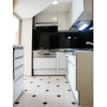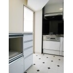 水まわり設備には、浴室換気暖房乾燥機や食器洗乾燥機が装備されたシリーズを選びました。 室内は明るい色調に内装を一新。水まわりの床をデザイン性のあるものにし、おしゃれな空間を演出しました。