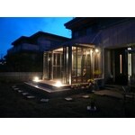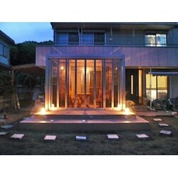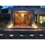 お庭にタイルデッキを設置して,東洋エクステリア ジーマテラスを設置しました。タイルデッキには,船舶灯を設置しました。
