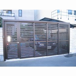 はじめは高さ1m位の伸縮門扉の取り付けを提案しましたが、お客様はもう少し頑丈で外から中があまり見えないものを取り付けたいとの事だったので、高さ1m80cm位の格子の門扉をお勧め致しました。