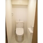 間接照明の柔らかな光がスタイリッシュで落ち着いたトイレ空間