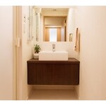 無機質な中に木の温もりを感じられる洗面空間