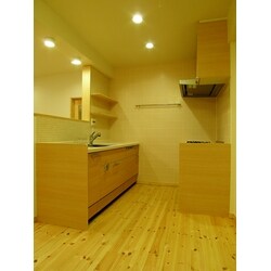キッチン/台所:明るいキッチンになりました。 シンクの右側もひろく、調理準備がしやすいです。 床のパイン材とキッチン空間も温かみのある空間ですね。