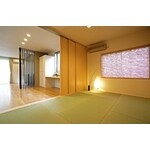 お客様のご要望に対してもともと3部屋に分かれていた空間を一つにすることで開放的なLDKにしました。さらに和室とLDKは、天井までの高さの引き戸で仕切りました。普段はオープンにし広々としたリビング空間、来客時などは客間としても利用できます。LDKと和室は段差を無くしバリアフリーにすることで安心して移動できます。どこにいても家族の気配を感じることはができるLDKになりました。リビングとダイニングの間のスリット柱が部屋のアクセントになっています。