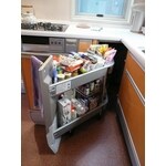 コンロが壊れたことをきっかけにキッチンのリフォームを決めたK様。今までのキッチンより収納量が増え、整理しやすくなると、とても喜んで頂きましたが、L型のキッチンにはコーナー部分の収納に無駄があることがご不満でした。そこで、コーナーの部分の収納力が優れたクリナップのキッチンをご提案。キャスターが付いて引き出せるワゴンと、側面のスライド式三角形収納カゴで無駄なくたっぷり収納できるようになりました。