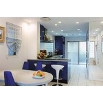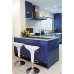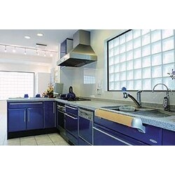 ウォーキングの途中、偶然見つけたリフォームフェアがMさんと弊社の出会いでした。Mさんは展示を見ていくうちに夢が広がってリフォームをしたい気持ちが強まったそうです。「キッチンをあまり生活感を感じさせない空間にしたい」という希望に、弊社プランナーはイタリアンモダンのDKを提案。床・壁・天井を白で統一し、ガラスブロックで光のあふれるスペースに仕上げました。深いブルーのシステムキッチンが映える、Mさんの夢を実現できた空間です。