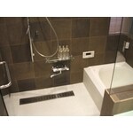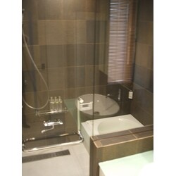 ジオブラウンのパネルが上質な印象を与えるユニットバス