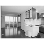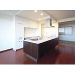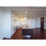 アイランド型キッチンならではの使い勝手、既存リビングのフローリングの取合を考慮しながらプランニングいたしました。 建具色やフローリングに合わせた家具調のキッチンは、キッチンらしさを感じさせず、開放的な空間に浮かび上がる洗練された佇まいが新鮮な印象となりました。